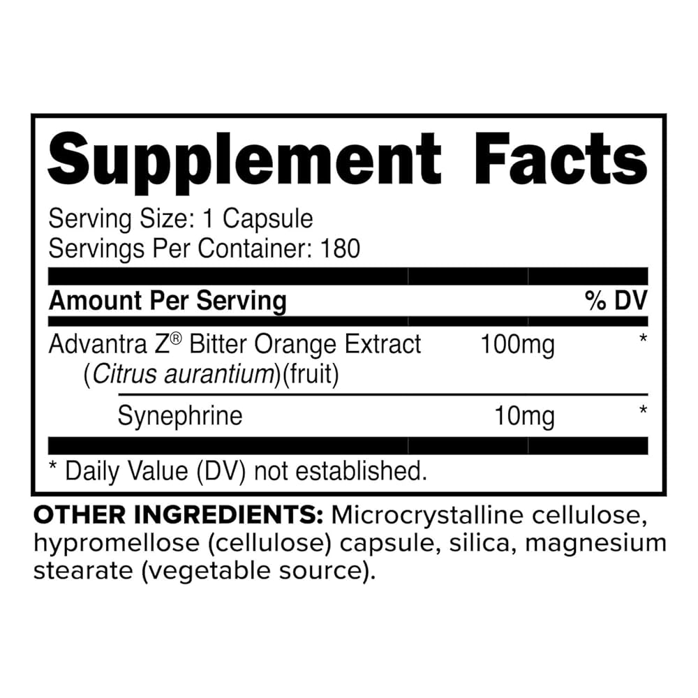 - Advantra Z® Bitter Orange Extract (Citrus aurantium): 100 mg