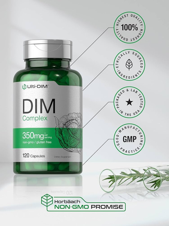 مکمل DIM Complex از برند Ulti-DIM حاوی ترکیب طبیعی Diindolylmethane (DIM) است که از تجزیهی ترکیبات گیاهی موجود در کلم بروکلی، گلکلم و کلم بروکسل به دست میآید.