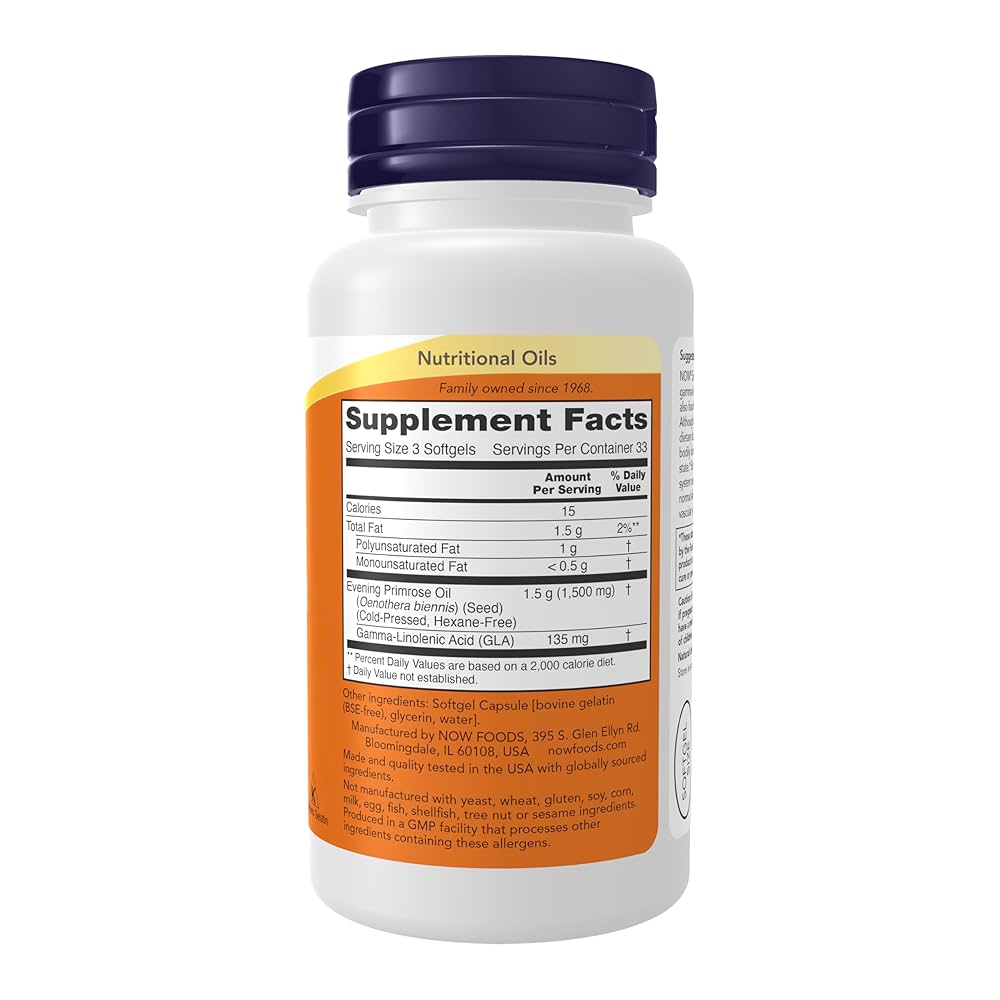 روغن گل مغربی (Evening Primrose Oil) از بهترین منابع طبیعی اسید گاما-لینولنیک (GLA) است؛ اسید چرب ضروری از خانواده امگا-6 که نقش مهمی در تنظیم هورمونها، سلامت پوست و سیستم ایمنی دارد. این محصول برند Now Foods کاملاً خالص و بدون هگزان بوده و انتخابی عالی برای بانوانی است که به دنبال بهبود تعادل هورمونی، کاهش علائم PMS، بهبود پوست و کاهش التهاب هستند.