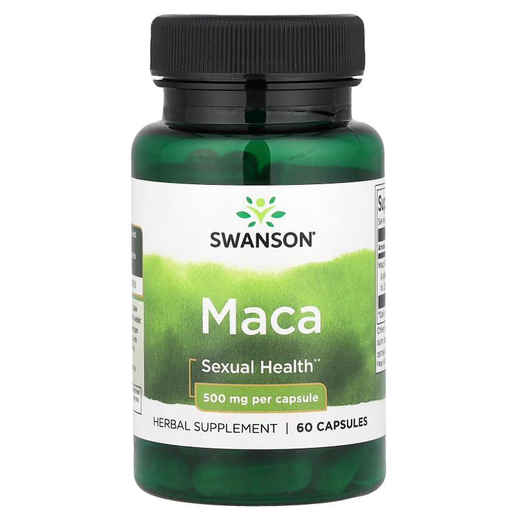 مکمل Maca 500 mg از برند معروف Swanson حاوی پودر طبیعی ریشه گیاه ماکا (Lepidium meyenii) از ارتفاعات کوههای آند در پرو است.
