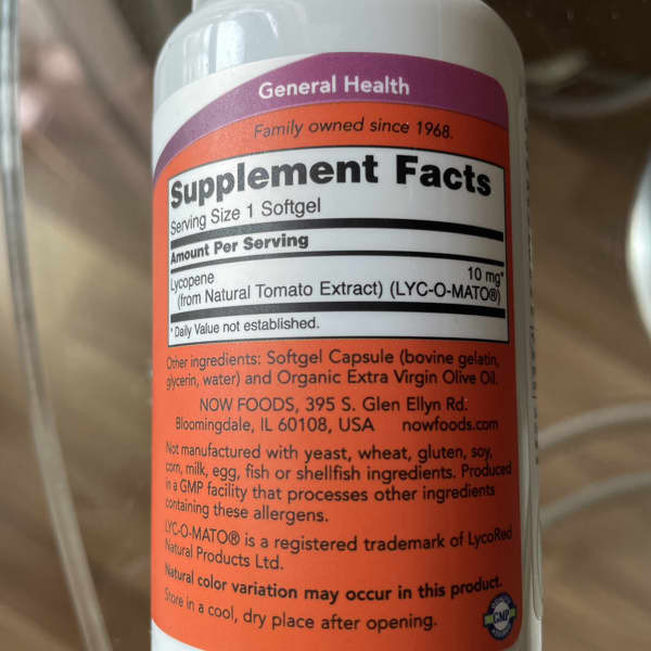 مکمل Lycopene 10 mg از برند معتبر NOW Foods یکی از قویترین آنتیاکسیدانهای طبیعی استخراجشده از گوجهفرنگی است.