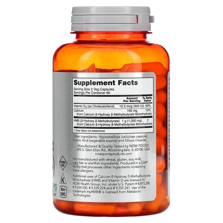 نسخهی NOW HMB با دوز استاندارد ۵۰۰ میلیگرم در هر کپسول و همراه با ویتامین D3 تولید شده تا جذب کلسیم و عملکرد عضلات را بهبود دهد.
