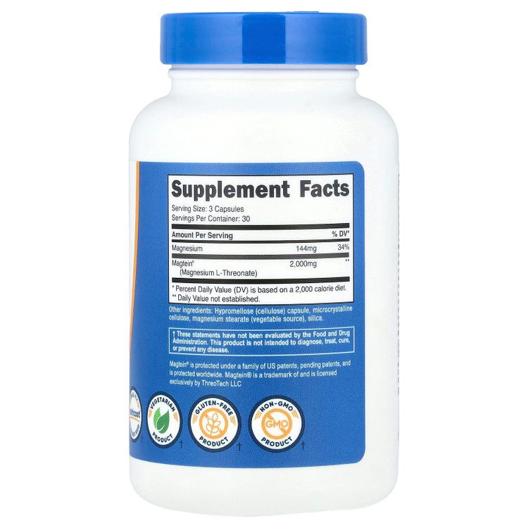 مکمل Magtein از برند آمریکایی Nutricost یکی از پیشرفتهترین فرمهای منیزیم در جهان است که از Magnesium L-Threonate ساخته شده — فرم ثبتشدهای که تنها نوع منیزیم قادر به عبور از سد خونی-مغزی است.