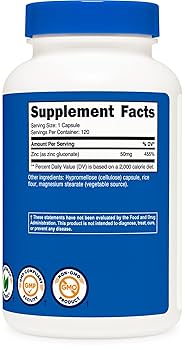 مکمل Zinc Gluconate از برند معتبر Nutricost یک منبع مؤثر و قابل جذب از روی (Zinc) است که نقش حیاتی در عملکرد سیستم ایمنی، سلامت پوست، مو، ناخن و متابولیسم بدن دارد.