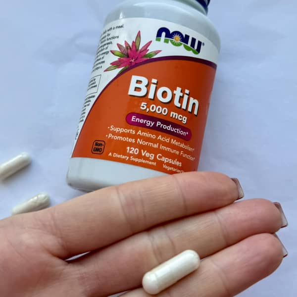 این مکمل از برند معتبر NOW Foods با دوز بالا ۵۰۰۰ میکروگرم در هر کپسول برای تقویت رشد مو، سلامت پوست و استحکام ناخنها فرموله شده است.