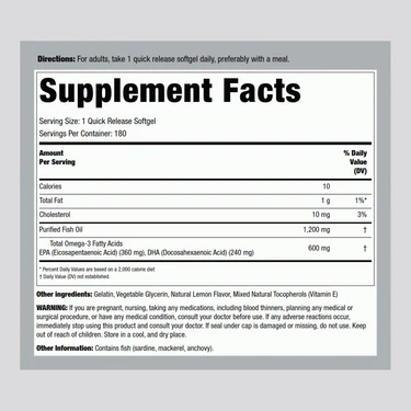 این محصول از روغن ماهی خالص و تصفیهشده برای حذف جیوه (Purified to Eliminate Mercury) ساخته شده و به شکل سافتژلهای سریعجذب (Quick Release Softgels) عرضه میشود تا بدن بتواند به سرعت از خواص آن بهرهمند شود.