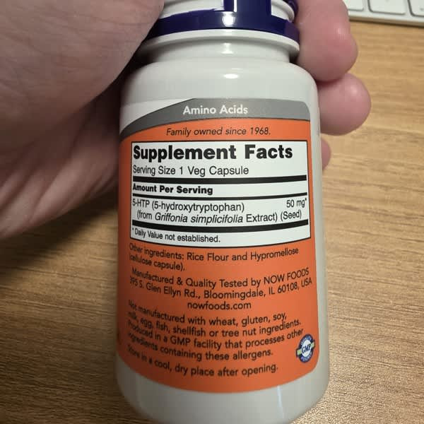 - 5-Hydroxytryptophan (from Griffonia simplicifolia seed) – 50 mg per Capsule