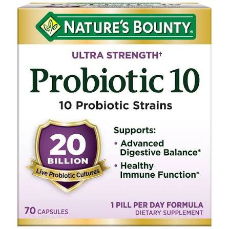 مکمل Probiotic 10 از برند معتبر آمریکایی Nature’s Bounty با قدرت بالا (Ultra Strength) حاوی ۱۰ سویه از باکتریهای مفید است که تعادل طبیعی میکروفلور روده را بازسازی کرده و باعث بهبود گوارش و عملکرد سیستم ایمنی میشود.