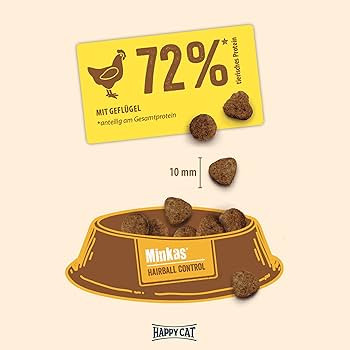 غذای خشک Happy Cat Minkas Hairball Control محصولی ویژه برای گربههای بالغ است که به کاهش گلولههای مویی (Hairballs) کمک میکند.