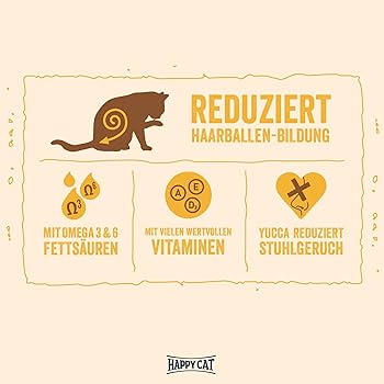 غذای خشک Happy Cat Minkas Hairball Control محصولی ویژه برای گربههای بالغ است که به کاهش گلولههای مویی (Hairballs) کمک میکند.