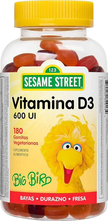 مکمل Vitamin D3 از برند Sesame Street با طراحی شخصیت دوستداشتنی Big Bird، مخصوص کودکان تهیه شده تا به شکل پاستیلهای خوشطعم و گیاهی، نیاز روزانه بدن آنها به ویتامین D3 را تأمین کند.
