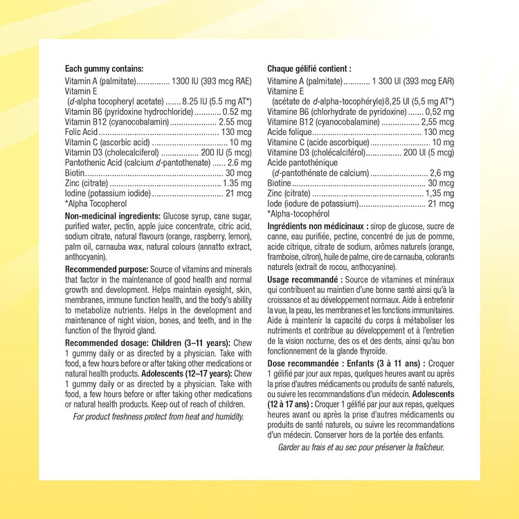 این محصول حاوی ویتامینها و مواد معدنی ضروری برای رشد، انرژی، ایمنی و سلامت عمومی کودک است و بهصورت پاستیلهای گیاهی با طعم پرتقال، تمشک و لیمو عرضه میشود.