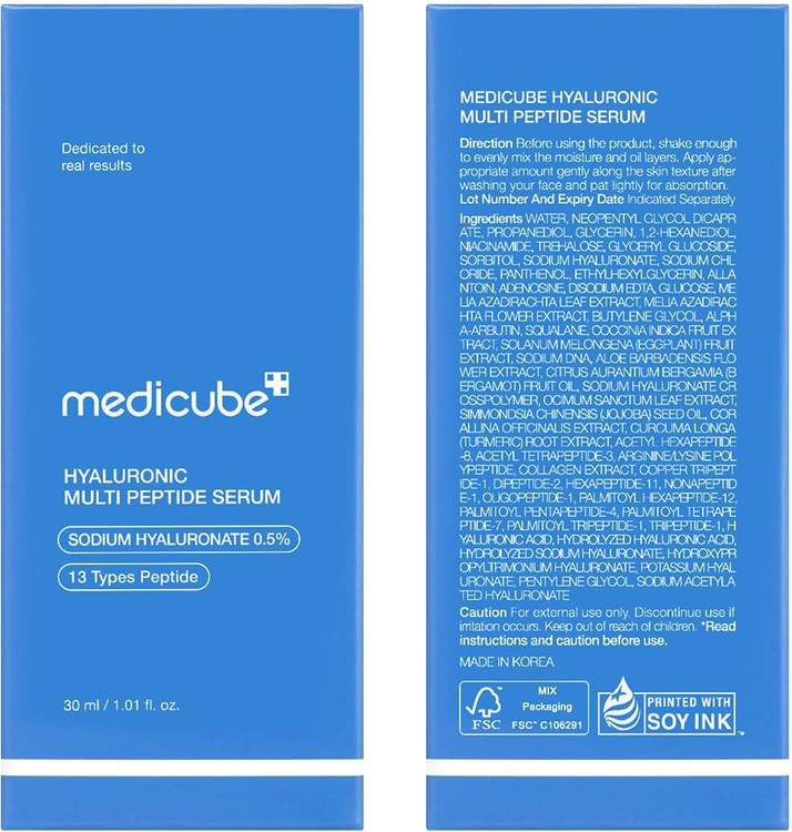 سرم Hyaluronic Multi Peptide Serum از برند کرهای Medicube ترکیبی قدرتمند از هیالورونیک اسید خالص و ۱۳ نوع پپتید فعال است که پوست را بهطور عمیق آبرسانی، سفت و بازسازی میکند.