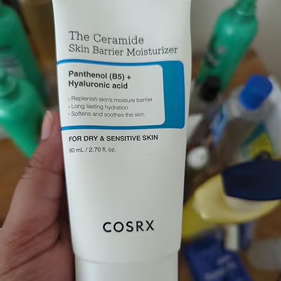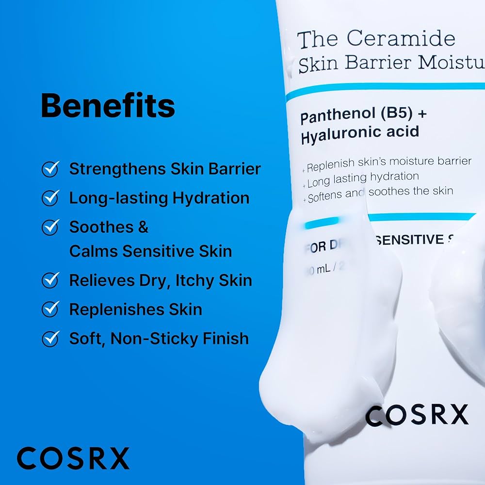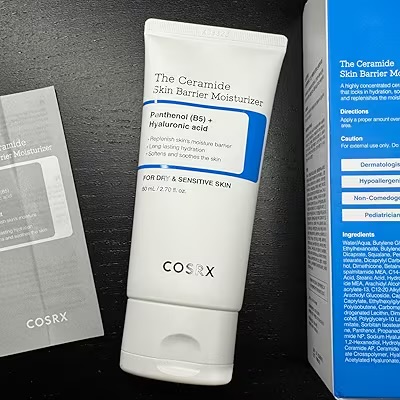 کرم The Ceramide Skin Barrier Moisturizer از برند تخصصی COSRX، یک مرطوبکننده قدرتمند با ترکیبی از پانتنول (ویتامین B5) و هیالورونیک اسید است که به طور عمیق پوست را آبرسانی کرده و سد دفاعی پوست را ترمیم میکند.