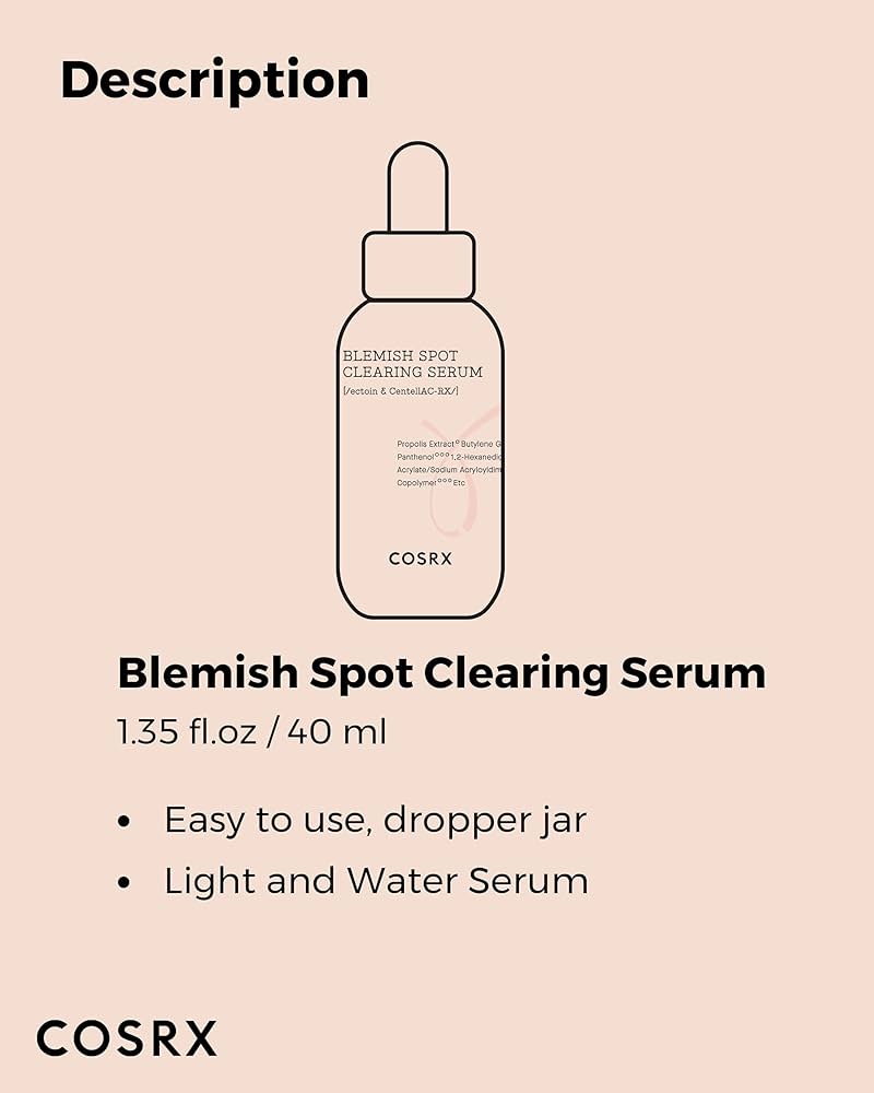 سرم Blemish Spot Clearing Serum از برند معتبر کرهای COSRX یکی از قویترین محصولات درمانی برای رفع جای جوش، لک، التهاب و بهبود بافت پوست است.
