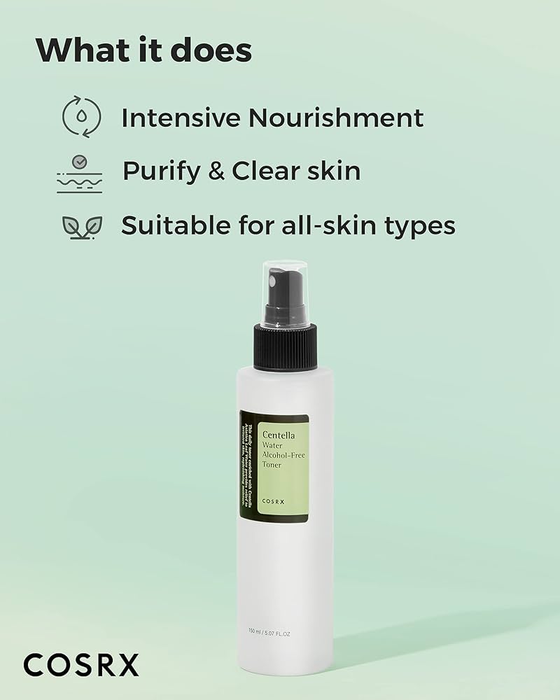 تونر Centella Water Alcohol-Free از برند کرهای COSRX یک تونر فوقالعاده ملایم و تسکیندهنده است که مخصوص پوستهای حساس، خشک یا ملتهب طراحی شده.