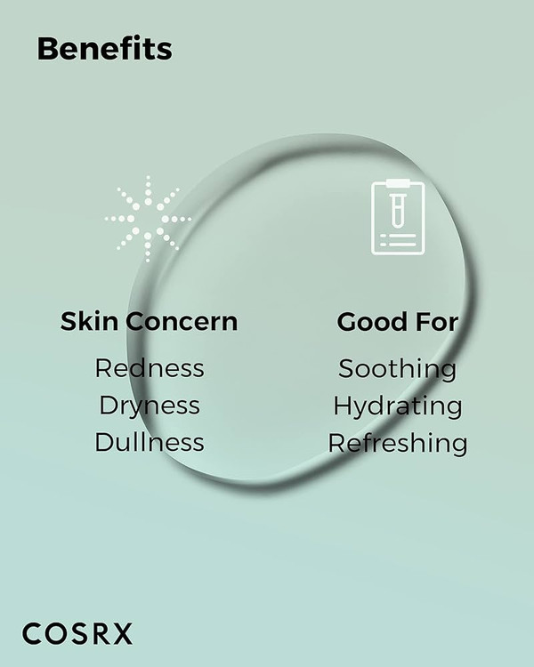 این تونر حاوی عصاره سنتلا آسیاتیکا (Centella Asiatica Leaf Water) میباشد که به آرامش پوست، ترمیم زخمها و بهبود التهاب کمک میکند.