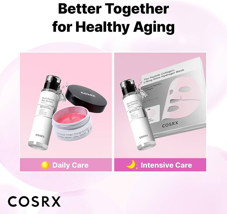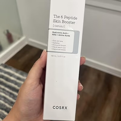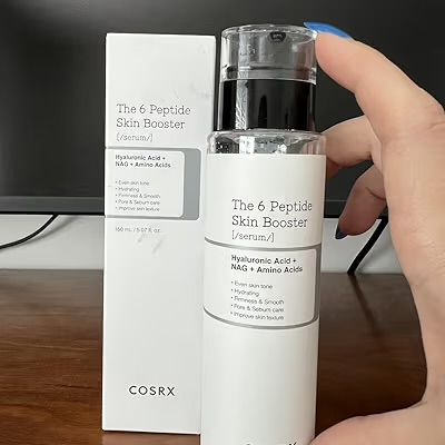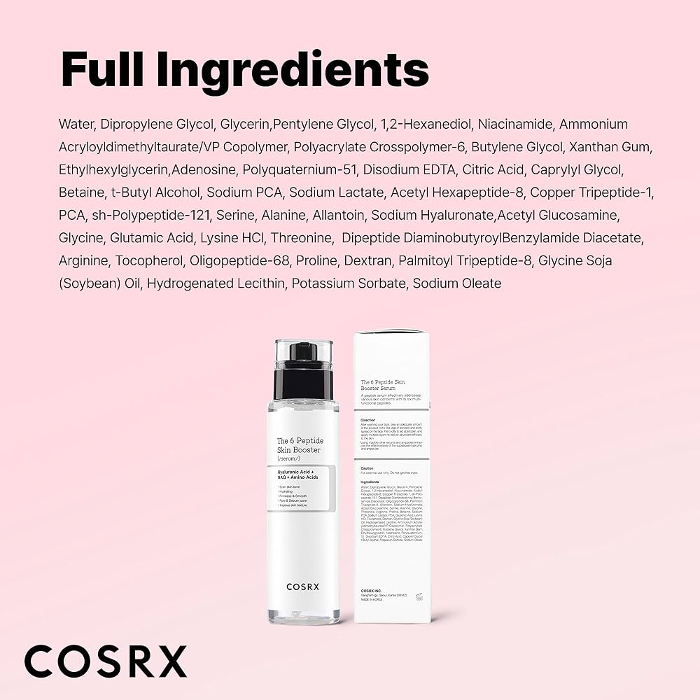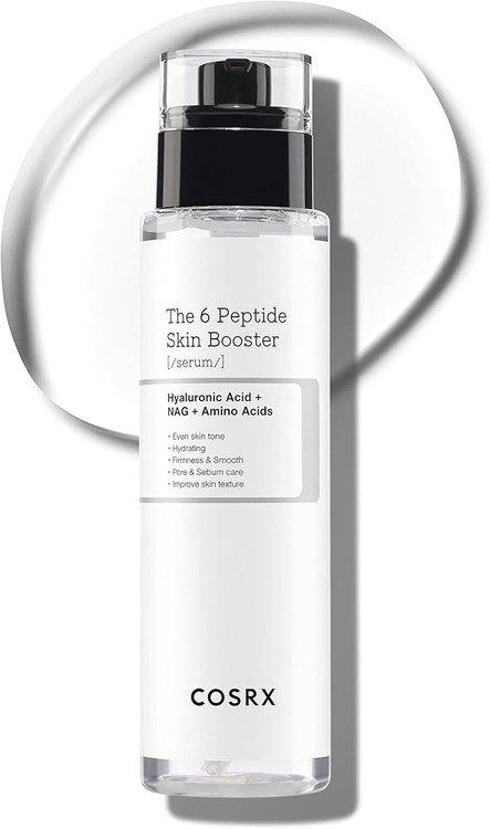 سرم 6 Peptide Skin Booster از برند محبوب COSRX یک تقویتکننده چندکاره پوست است که با ترکیب ۶ نوع پپتید فعال، هیالورونیک اسید و آمینواسیدها ساخته شده تا به طور همزمان باعث افزایش استحکام، کاهش چروک، بهبود بافت پوست و روشنتر شدن رنگ آن شود.