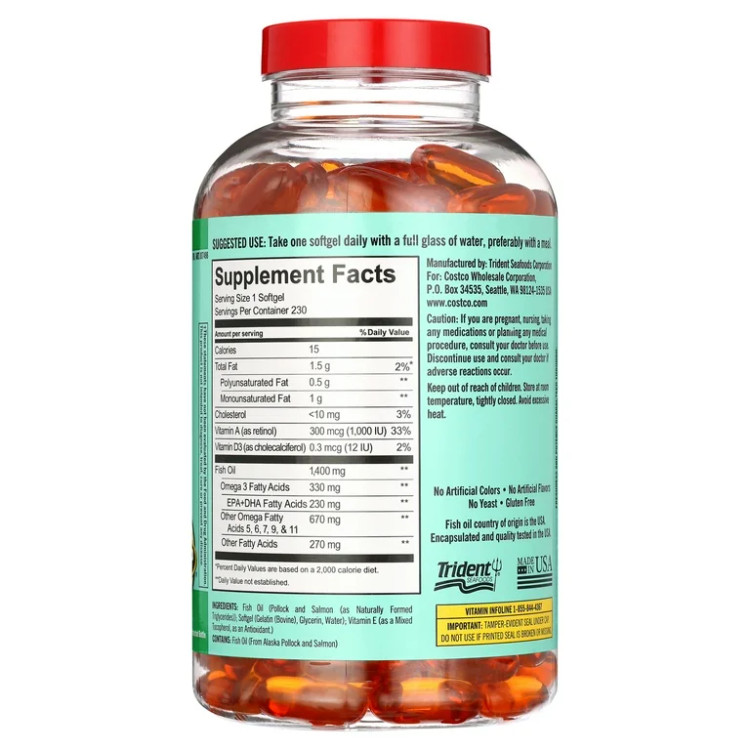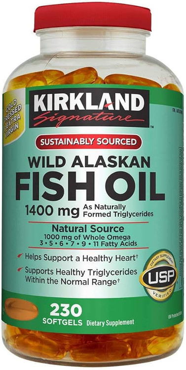 مکمل Wild Alaskan Fish Oil از برند محبوب و معتبر Kirkland Signature منبعی طبیعی و قدرتمند از اسیدهای چرب امگا ۳، ۵، ۶، ۷، ۹ و ۱۱ است که از ماهیهای وحشی آلاسکایی استخراج شدهاند.