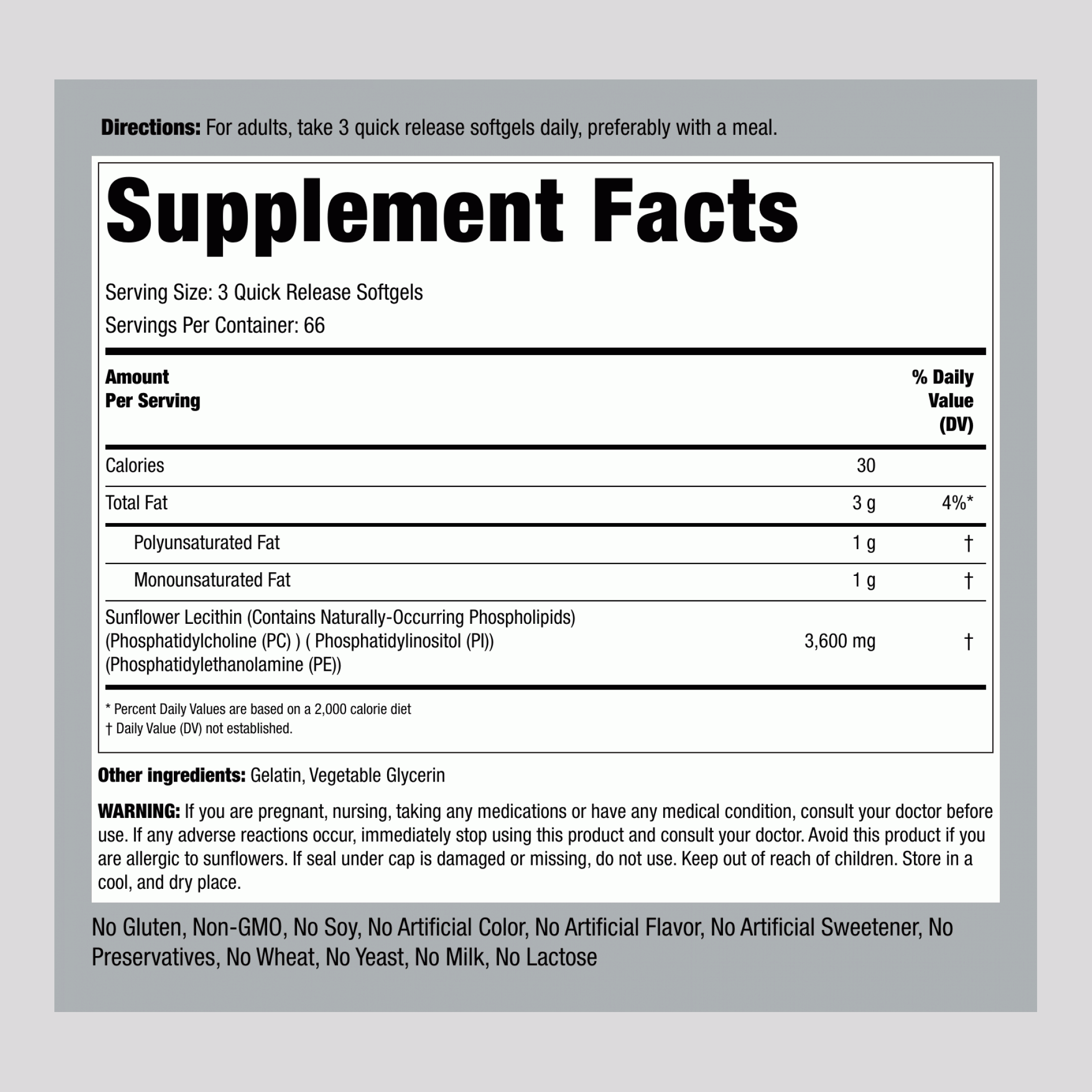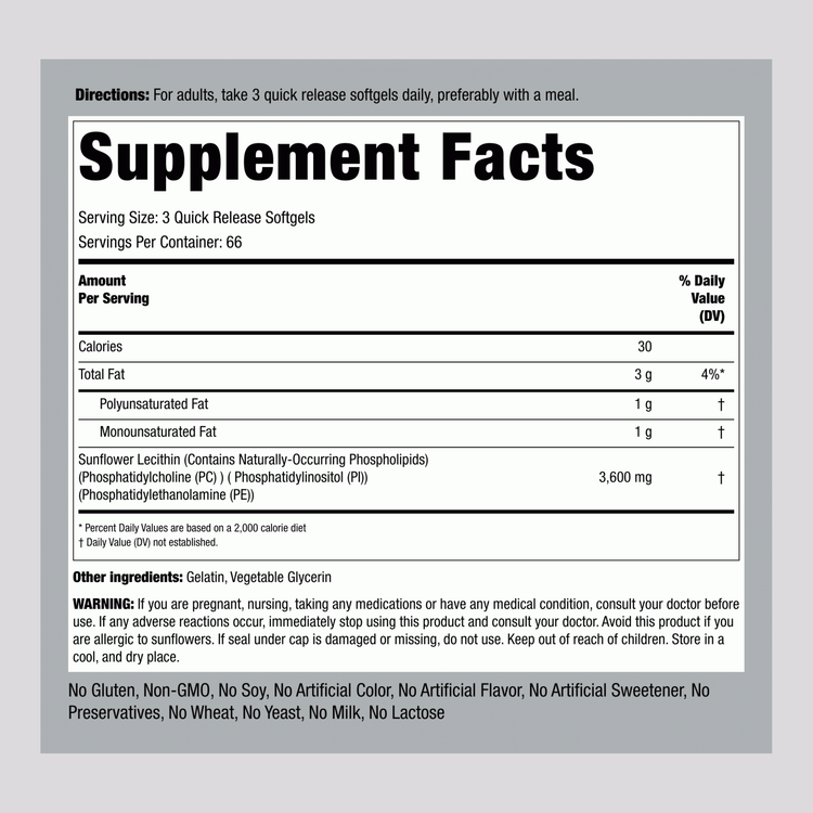 لسیتین آفتابگردان ۳۶۰۰ میلیگرم پایپینگ راک یک منبع طبیعی و گیاهی از فسفولیپیدهای ضروری است که بدون استفاده از سویا تولید شده و کاملاً غیرتراریخته (Non-GMO) میباشد.