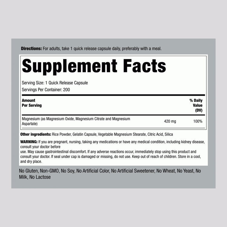مکمل Triple Magnesium Complex از برند Piping Rock ترکیبی از سه نوع منیزیم با جذب بالا شامل منیزیم اکسید، منیزیم سیترات و منیزیم آسپارتات است که برای تأمین کامل نیاز روزانه بدن به این ماده معدنی حیاتی طراحی شده است.
