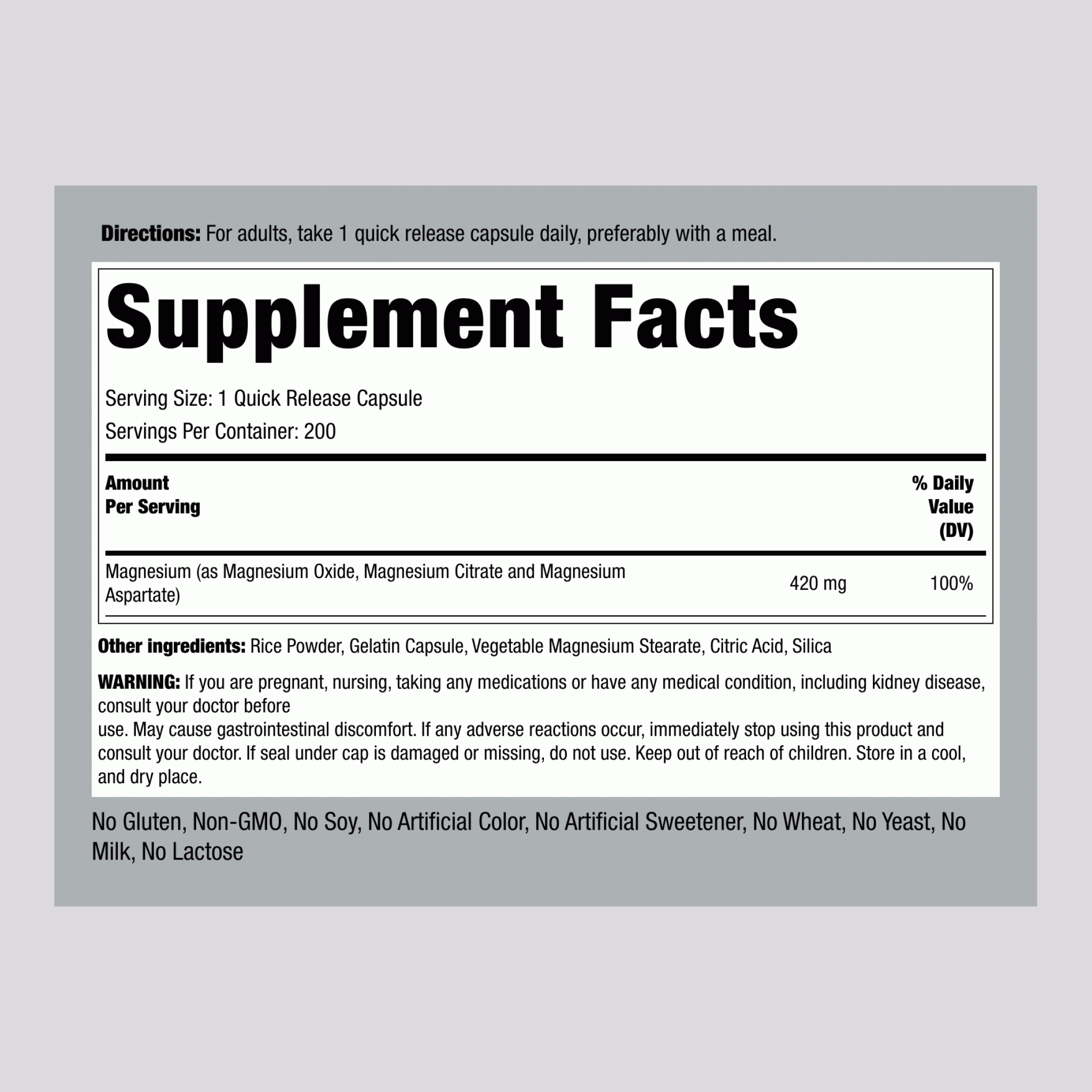 مکمل Triple Magnesium Complex از برند Piping Rock ترکیبی از سه نوع منیزیم با جذب بالا شامل منیزیم اکسید، منیزیم سیترات و منیزیم آسپارتات است که برای تأمین کامل نیاز روزانه بدن به این ماده معدنی حیاتی طراحی شده است.