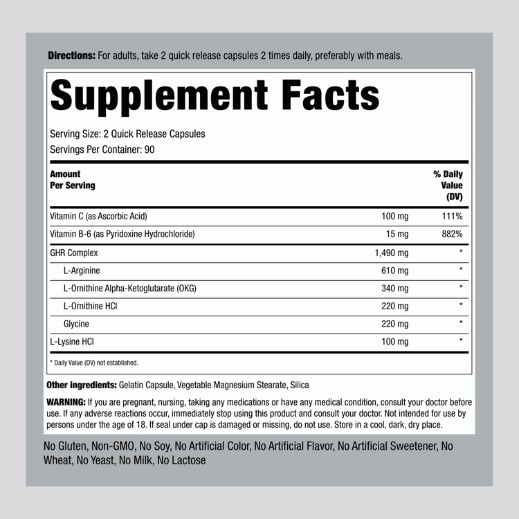 Piping Rock GHR Complex | 180 Capsules | 1490 mg GH Formula