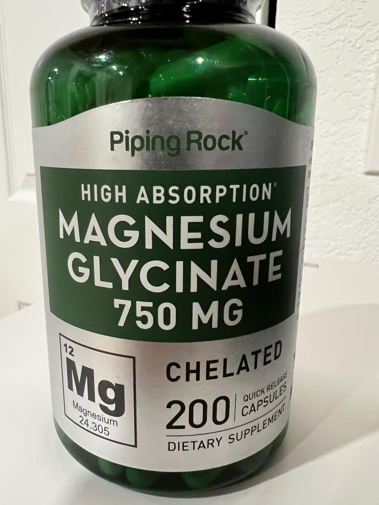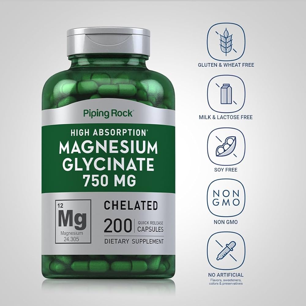 منیزیم گلیسینات پایپینگ راک | جذب بسیار بالا | 750mg | 200 کپسول