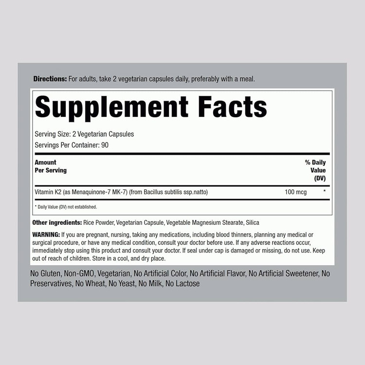 Piping Rock Vitamin K2 MK7 100mcg – 180 Vegetarian Capsules