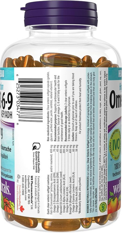 مکمل Omega 3-6-9 برند معتبر Webber Naturals ترکیبی کامل از اسیدهای چرب ضروری است که به شکل متعادل از منابع ممتاز فراهم شده: