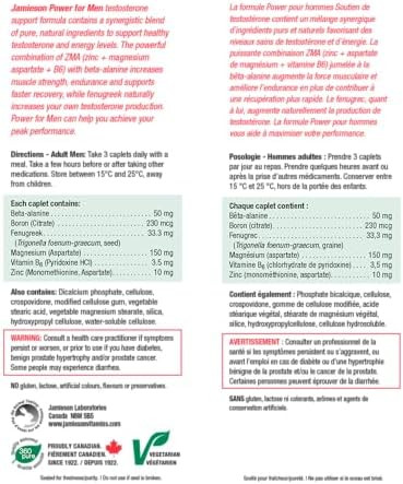 مکمل Power for Men از برند معتبر Jamieson یک فرمول تخصصی برای افزایش تستوسترون طبیعی بدن، افزایش قدرت، انرژی و استقامت مخصوص آقایان است.