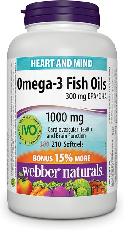 امگا ۳ روغن ماهی ۱۰۰۰ میلیگرم وبر نچرالز– ۲۱۰ سافتژل | حمایت از قلب و مغز
