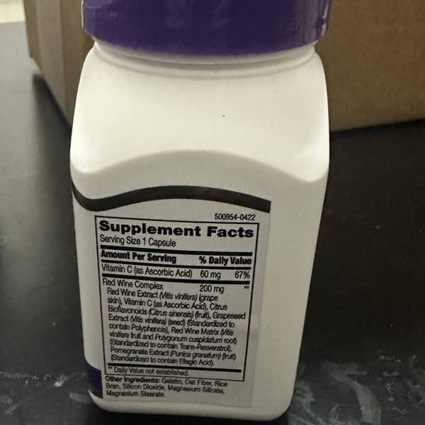 مکمل Resveratrol Red Wine Extract از برند معتبر 21st Century حاوی رزوراترول استخراجشده از عصاره انگور و شراب قرمز است؛ یک آنتیاکسیدان قدرتمند که به عنوان راز طول عمر و سلامت قلب در کشورهای مدیترانهای شناخته میشود.