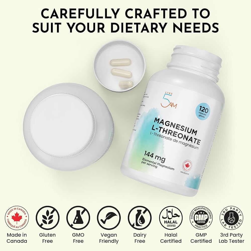 Magnesium L-Threonate از برند Live 5AM یکی از پیشرفتهترین فرمهای منیزیم است که با جذب بالا برای سلامت مغز، حافظه، تمرکز و بهبود عملکرد عصبی طراحی شده است.