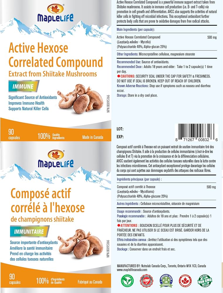 مکمل Active Hexose Correlated Compound (AHCC) از برند معتبر MapleLife یکی از قویترین ترکیبات طبیعی برای تقویت سیستم ایمنی بدن است.
