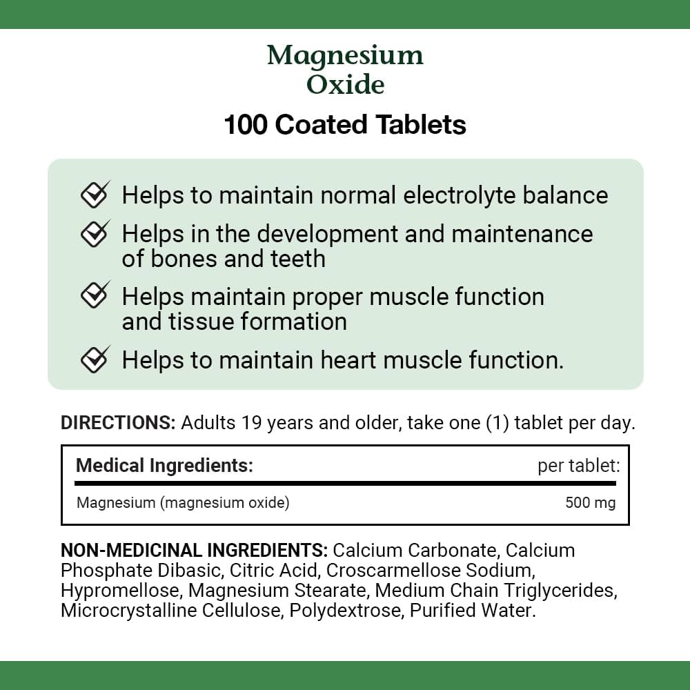 مکمل Magnesium Oxide 500mg از برند معتبر Nature’s Bounty یکی از بهترین منابع تأمین منیزیم برای بدن است. منیزیم یکی از مهمترین مواد معدنی ضروری است که در صدها واکنش متابولیکی بدن نقش دارد، از جمله عملکرد صحیح عضلات، سلامت سیستم عصبی، تنظیم ضربان قلب و حفظ استحکام استخوانها.