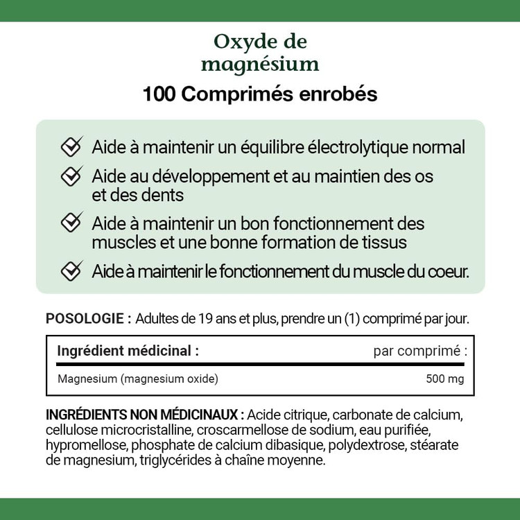 - مقدار منیزیم در هر قرص: 500mg
