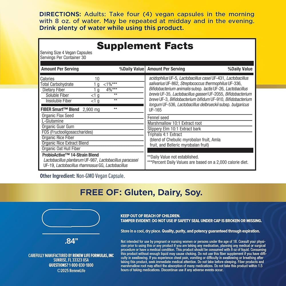 مکمل Fiber Smart از برند RenewLife یکی از قویترین ترکیبات برای تقویت کولون، سلامت روده و تنظیم حرکات روده است.