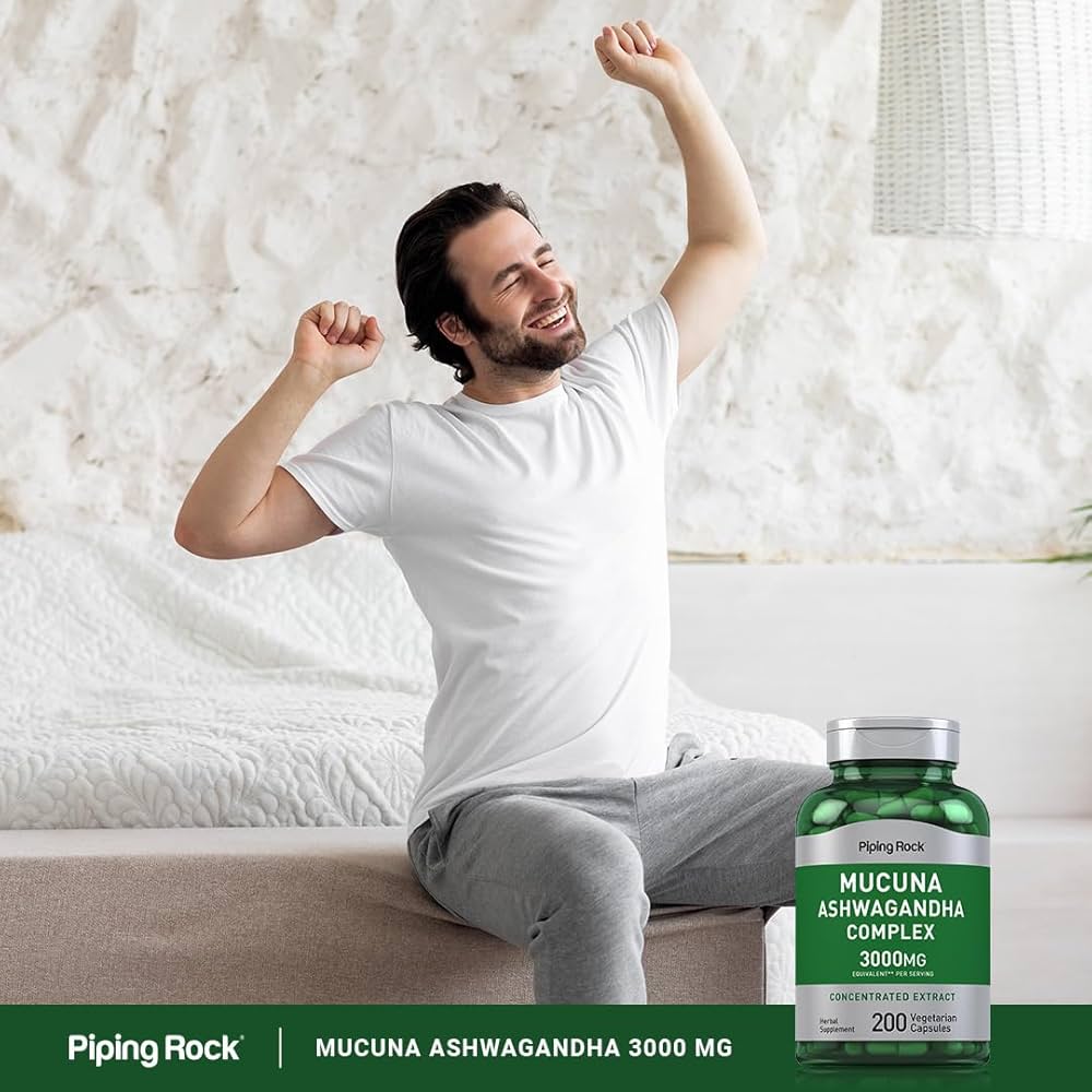 مکمل Mucuna + Ashwagandha Complex از برند معتبر Piping Rock یک ترکیب فوقالعاده قدرتمند آداپتوژن است، شامل دو گیاه بسیار معروف: