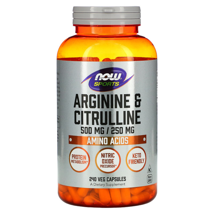 کپسول Arginine & Citrulline از برند معتبر Now Sports ترکیبی ایدهآل از دو آمینواسید کلیدی است که برای افزایش نیتریک اکساید، جریان خون و استقامت ورزشی طراحی شدهاند.