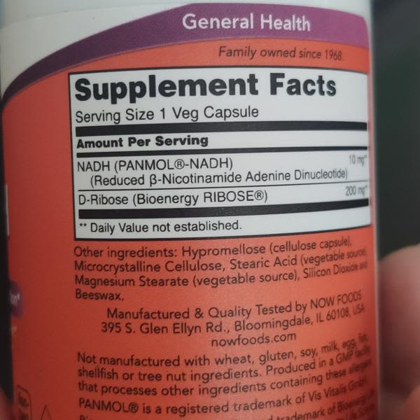 • دوز هر کپسول: ۱۰ mg NADH + 200 mg D-Ribose