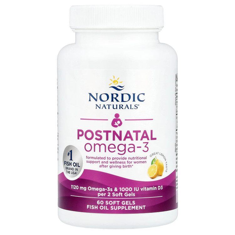 Postnatal Omega-3 از برند Nordic Naturals بهطور اختصاصی برای دوران پس از زایمان فرموله شده است.