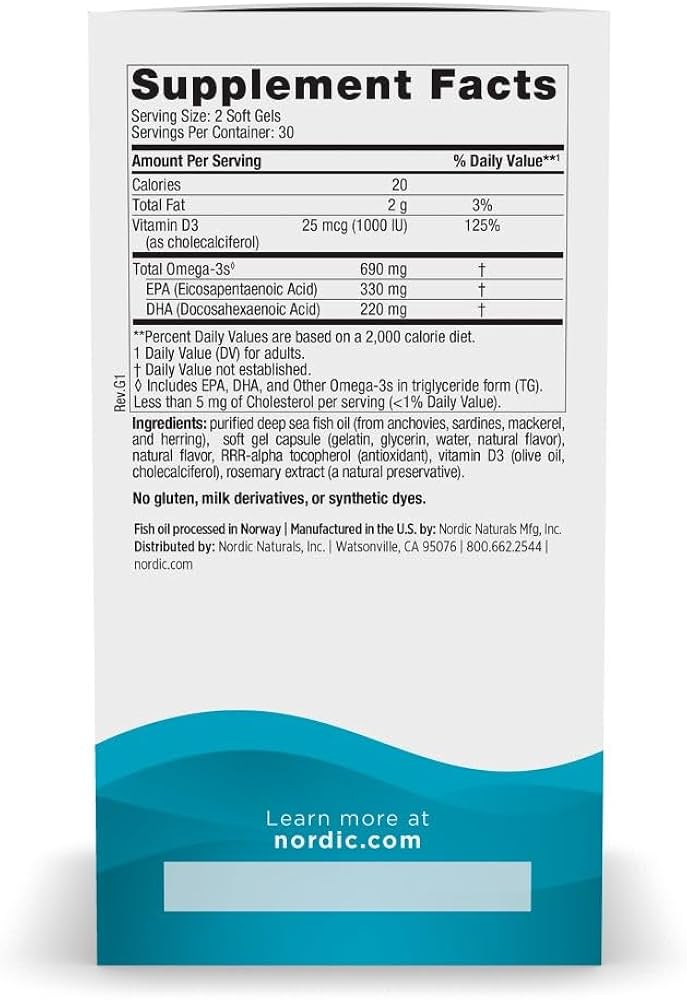 اُمگا 3-D نوردیک نچرالز ترکیبی باکیفیت از روغن ماهی خالص اُمگا ۳ بههمراه ویتامین D3 است که برای حمایت همزمان از سلامت قلب، مغز، استخوانها و سیستم ایمنی طراحی شده است.