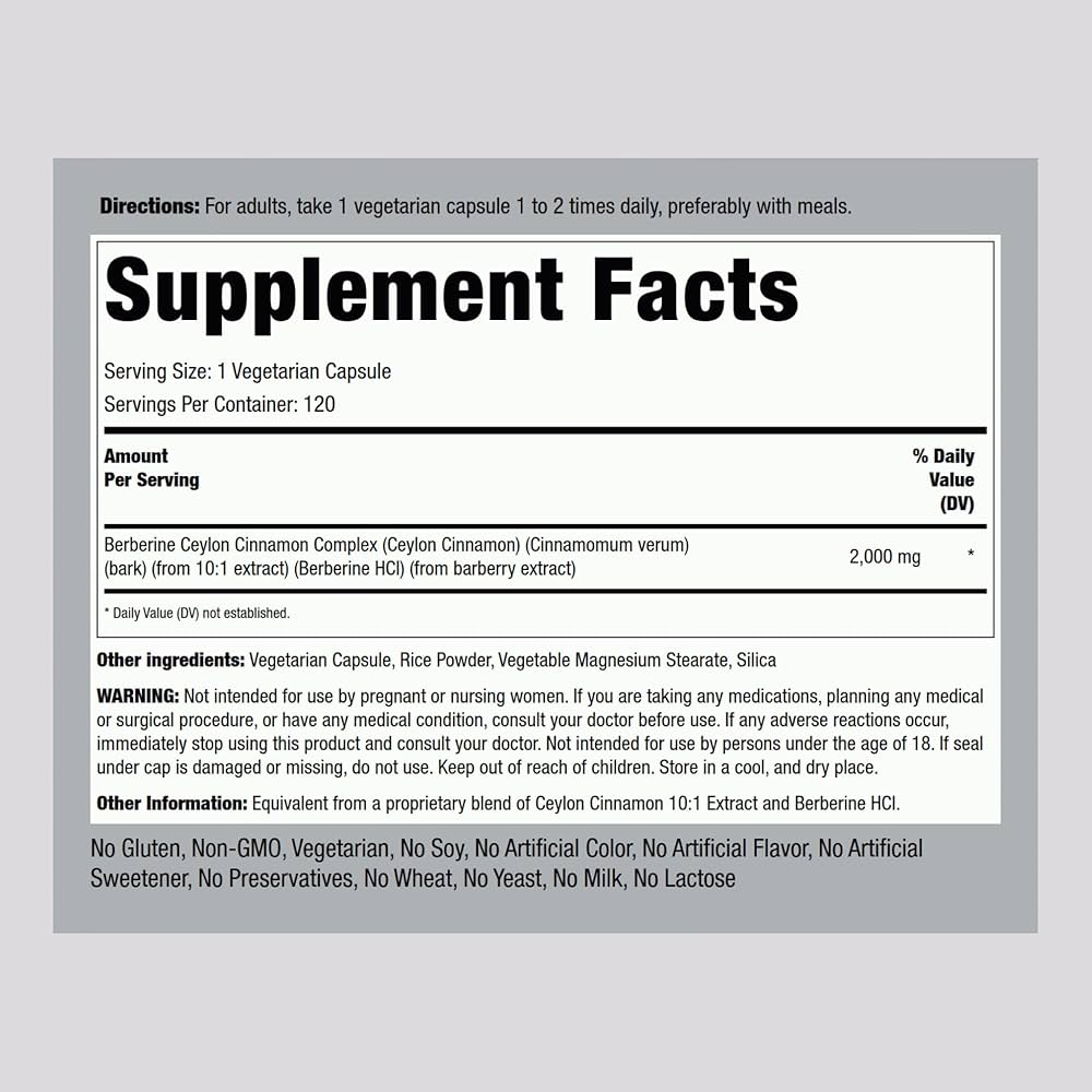 مکمل Berberine + Ceylon Cinnamon از برند Piping Rock یک ترکیب قدرتمند برای کنترل قند خون، بهبود حساسیت به انسولین، کمک به کاهش وزن و حمایت از سلامت متابولیسم است.