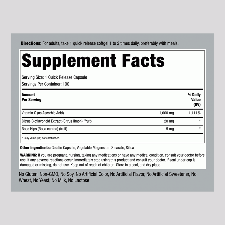 ویتامین C پایپینگ راک ۱۰۰۰ میلیگرم | ۱۰۰ عدد