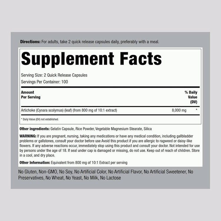 این محصول از برند PipingRock با دوز بالای ۸۰۰۰ میلیگرم معادل در هر سروینگ بهصورت عصاره غلیظ تولید شده و انتخابی مناسب برای پاکسازی طبیعی بدن و حمایت از عملکرد صفرا و کبد محسوب میشود.